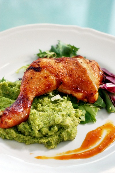 udo indycze marynowane w pomarańczach z puree z brokułów