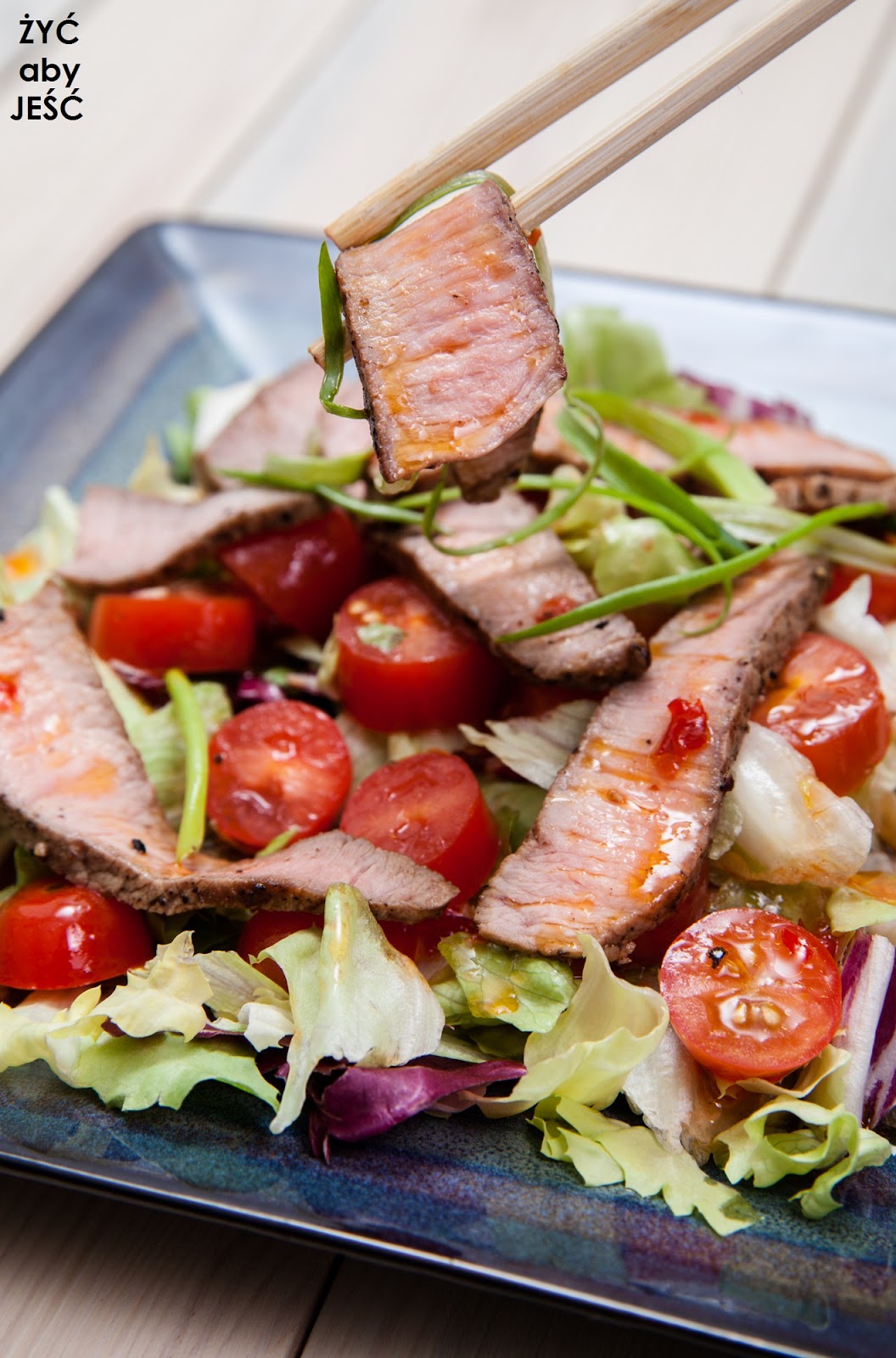 Uwielbiam połączenie wołowiny z kruchą sałatą i słodko ostrym sosem ... jeśli wy też to koniecznie musicie spróbować tej sałatki.